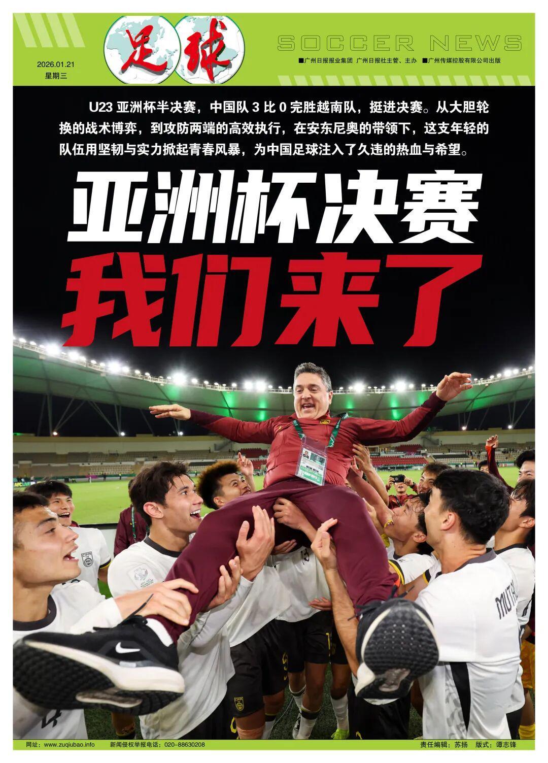 这场3比0不仅是一张决赛入场券,更是U23国足成长的里程碑,同样也是安东尼奥口中,回应“中国足球渴望提高”的重要胜利。从小组赛首次出线,到点球淘汰乌兹别克斯坦,再到半决赛完胜越南,这是自2004年的男足亚洲杯(决赛1比3不敌日本)、亚青赛(决赛0比2韩国)、亚少赛(决赛1比0朝鲜夺冠)后,中国男足国字号球队首次晋级亚洲大赛决赛——对于中国足球的信心提振,意义不言而喻。